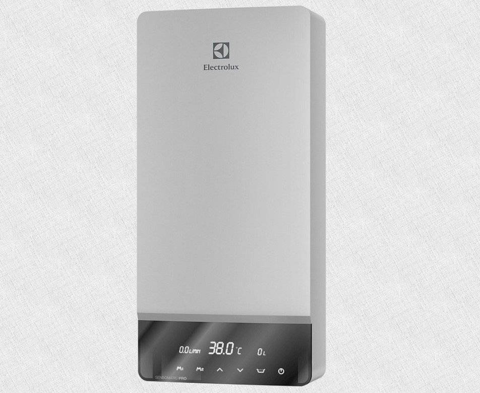 Проточная водогрейка с производительностью 4,2 литра в минуту и мощностью нагревателя 8,8 кВт. Максимальное значение температуры – 60 градусов. Давление до 7 атмосфер. Есть термостат, дисплей, самодиагностику. В комплекте есть фильтр для очистки воды от примесей, что продлит срок службы нагревательного элемента. Класс защиты – 4. Есть программируемые режимы и интеллектуальный контроль работы. Вес – 2,5 кг. Подключается через розетку 220 Вт, крепится на стене вертикально. Цена – от 14 тысяч рублей. (2 магазин, Москва).