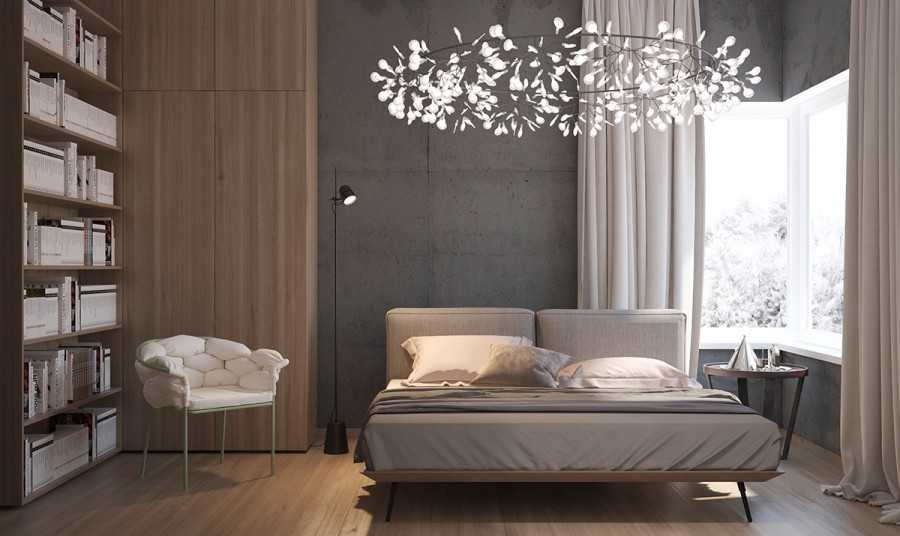 Часто в спальнях вешают люстру над кроватью, но это неправильно: вы лежите, и свет бьет прямо в глаза. То же касается точечного света, интегрированного в потолок: точки нужно располагать вне кроватной зоны. Или же купите светильники с углубленным источником света, который можно увидеть только стоя непосредственно под ними. Система встроенных потолочных светильников даст общий свет. Торшеры, настенные светильники, закарнизная подсветка локализуют свет и делают его более приглушенным. Сейчас многие пускают свет со стены, избегая потолочных светильников. Этот прием родом из гостиничного освещения — такой свет стоит во многих сетевых отелях. Массовое строительство подразумевает небольшие площади квартир и высоту потолков, а потолочный свет ее только съедает: для установки светильников делают подвесной или натяжной потолок, который занимает 10−20 сантиметров, от чего пространство кажется давящим. Поэтому стены и потолок сперва штукатурят и красят и только потом делают систему отраженного света.