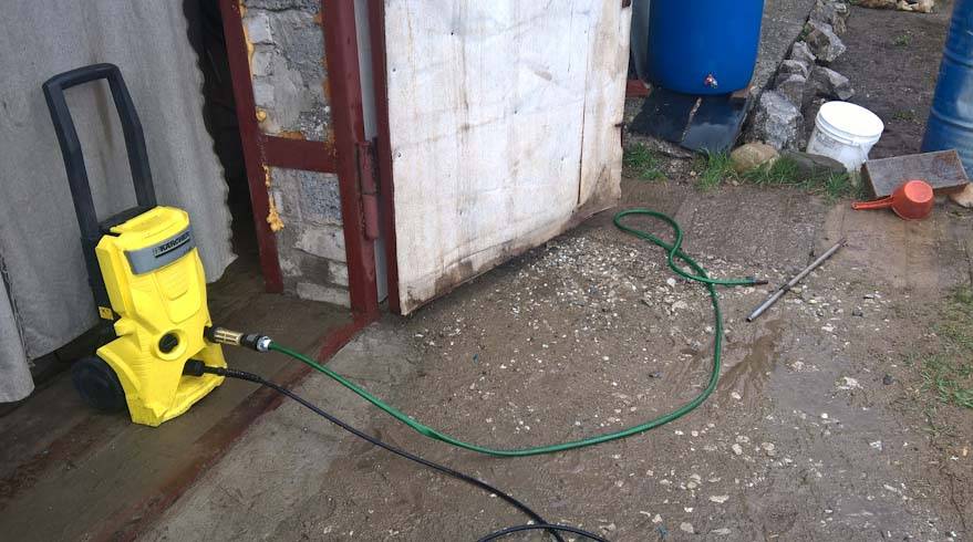 В схему подключения мойки высокого давления к бочке, ведру к всасывающему патрубку также входит установка фильтра и штуцера, к которому подсоединяют шланг для подачи. Второй конец опускают в используемую емкость. Чтобы при включении он не выскочил, его погружают в воду и закрепляют. Сначала подсасывают для наполнения рукава водой, далее он сам начнет набирать нужное ее количество.