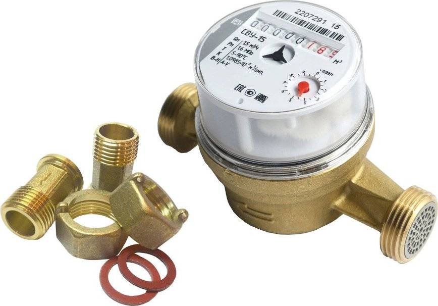 Устанавливают тахометрические счетчики для измерения расхода как холодной, так и горячей воды, если речь идет о небольших объемах. На большие расходы эти водомеры не рассчитаны