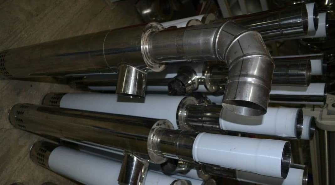 Трубы из нержавейки наиболее популярны. Они не деформируются под воздействием резких температурных скачков и выносят нагрев до 550 градусов. Материал обладает высокой стойкостью к агрессивным веществам и может использоваться в качестве дымоотвода на протяжении 30 лет.