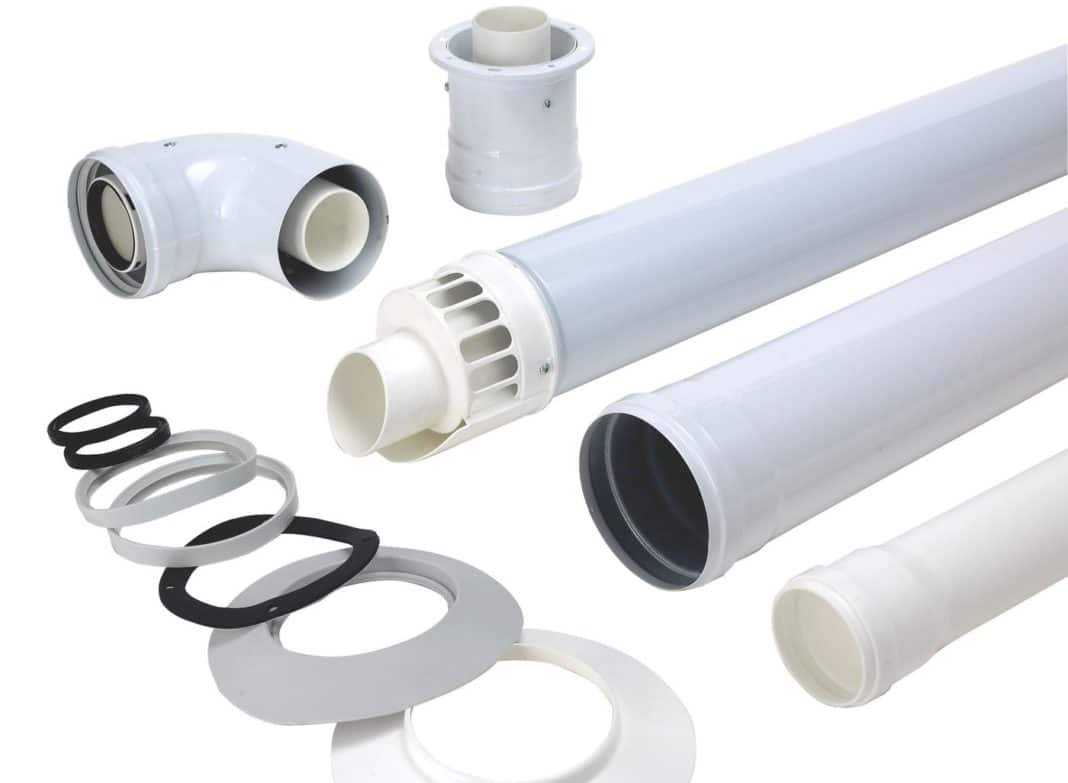 Дымоотводы из термоустойчивого пластика используют для конденсационных газовых котлов. Помимо легкого веса и способности выдерживать нагрев до 205 градусов материал имеет сравнительно невысокую стоимость.