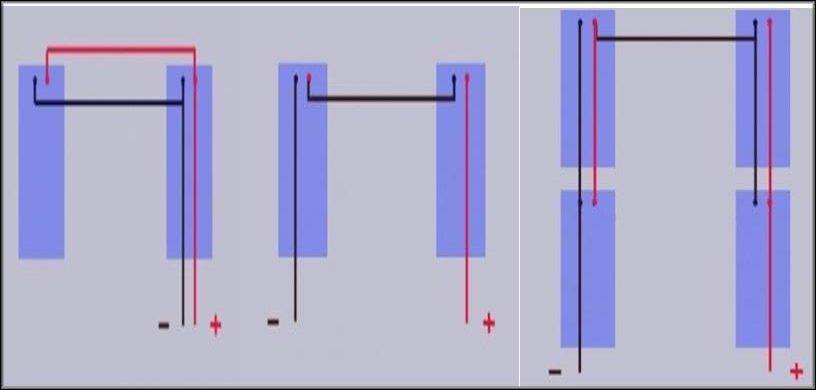 Ниже схематически параллельная, последовательная и смешанная схемы как правильно подсоединить панели между собой: