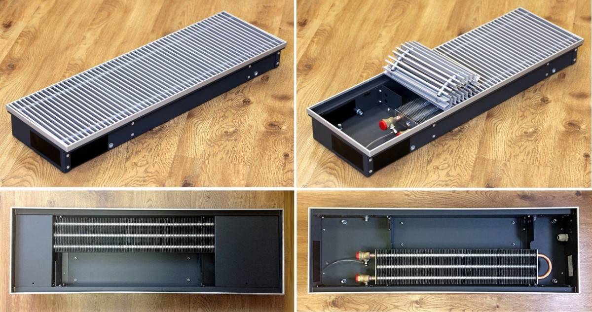 Устройство и внешний вид внутрипольного конвектора с вентилятором