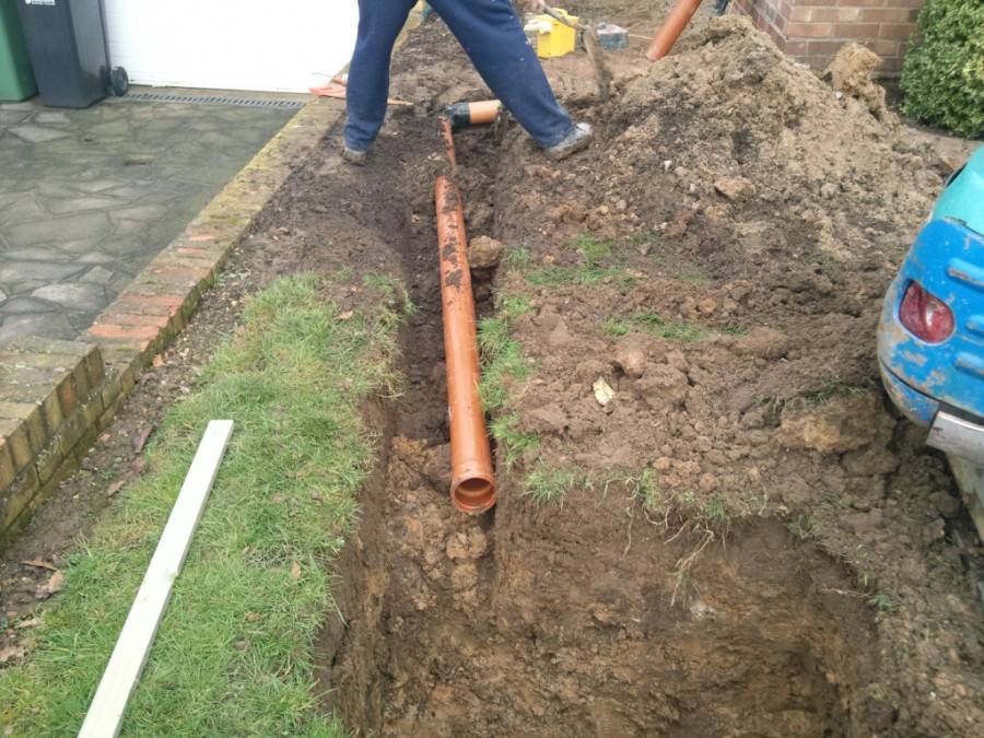 - При прокладке под газонами, садовыми дорожками и другими участками, где не предполагается регулярная обработка (вспахивание, копка) земли, вполне достаточно проложить трубу на глубине 20-25 см.