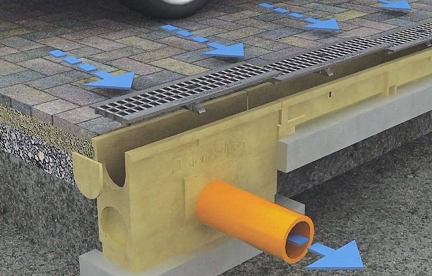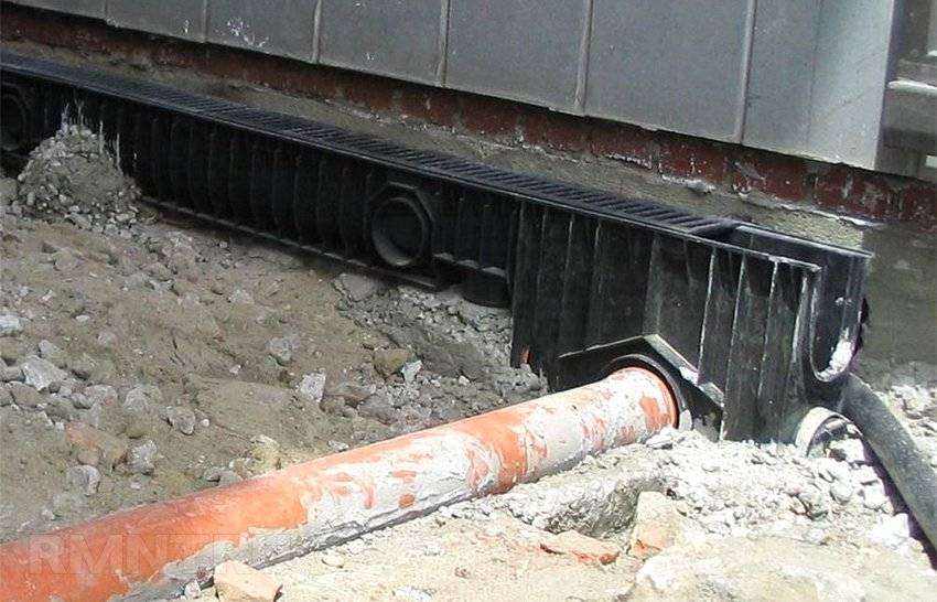 - элементы, служащие для перемещения воды к ливневым колодцам или другим пунктам назначения – трубы, желоба, пластиковые или бетонные лотки для ливневой канализации;