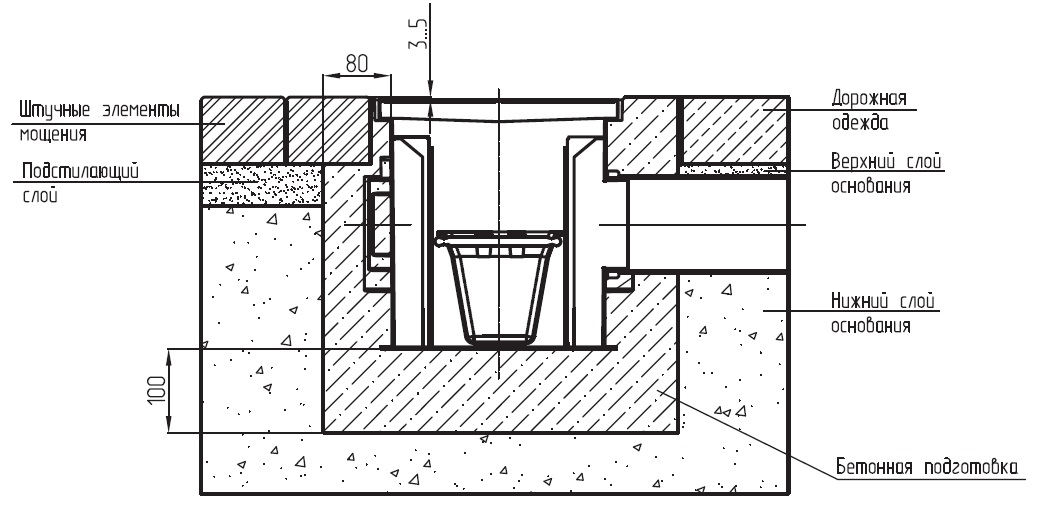 Для них в поверхностях устраивают небольшие углубления «конвертного» типа в виде перевернутой усеченной пирамиды, где в нижней точке пересечения уклонов и устанавливают эти элементы.