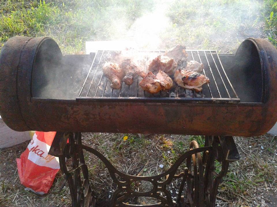 - Установите внутри мангала колосник – решетку для углей. Так Вы сэкономите немного дров, а угли не будут разлетаться по всему объему жаровни. Колосник можно сделать из педали от старой швейной машинки.