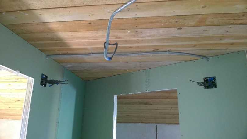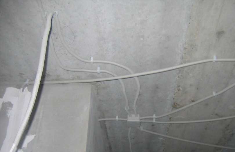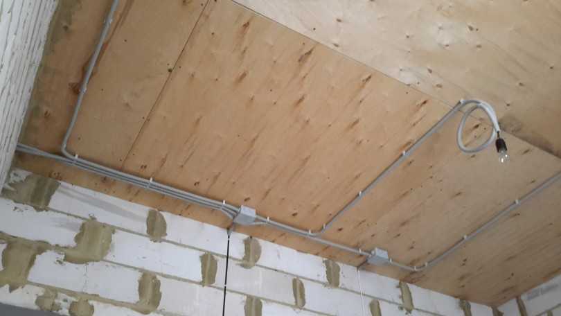 Лучше такой способ прокладки не использовать. «Но я видел, что электропроводку проводят по потолку» – скажете вы. Да, проводят, но открытым способом и в гофре. Шроба в этом случае не нужна.