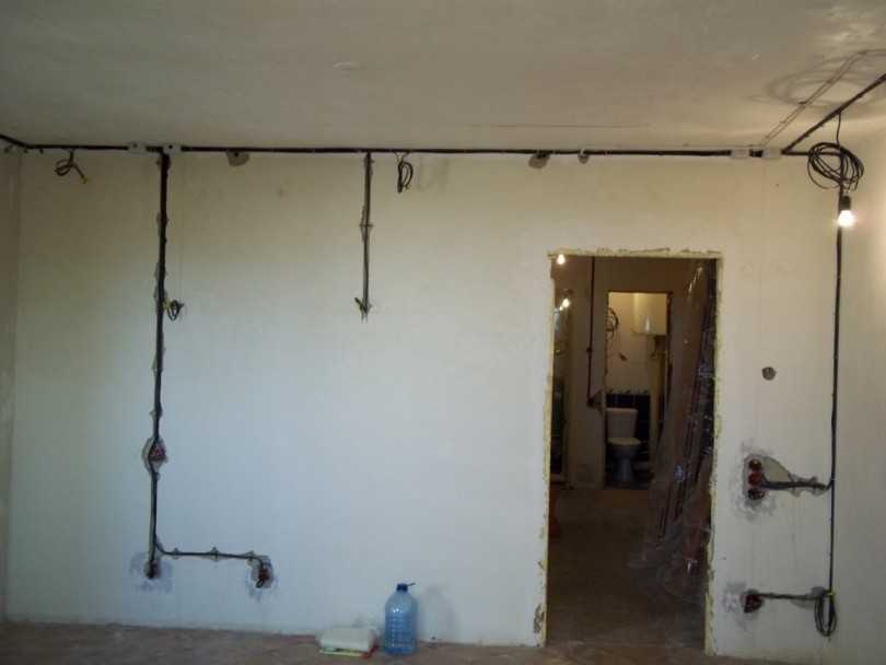 Существуют два способа прокладки провода. Это открытым способом и скрытым. Открытый способ – это поверх штукатурки, а скрытый – внутри штукатурки.