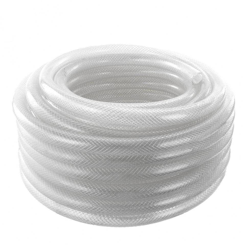 Прозрачный рукав длиною 25 м и толщиной стенок 3 мм может выдержать давление воды до 8 бар. Диаметр подключения ¾ дюйма, поэтому он легко одевается на кран, к нему не сложно будет подобрать дополнительные аксессуары для полива.