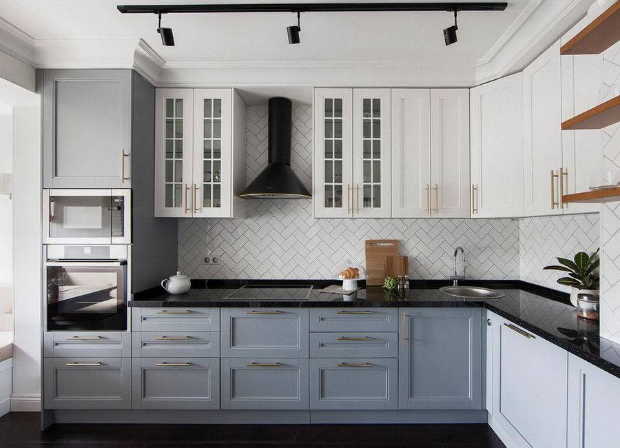 Комбинируя форму и пропорции кухонных фасадов, можно по своему желанию визуально изменить пропорции помещения, зонировать и оформить в любом стиле.