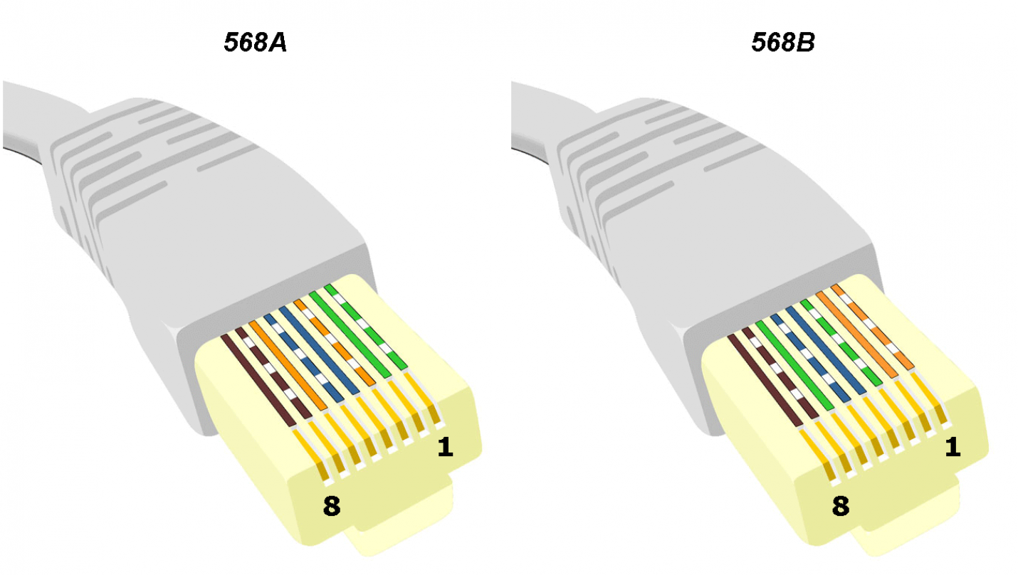 - Различные схемы для обжима витой пары 4 и 8 жил