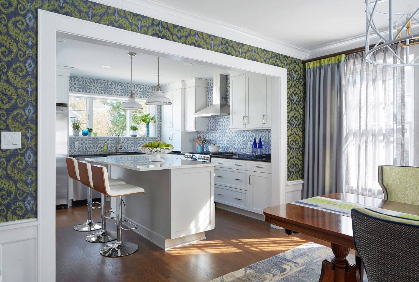 В галерее, которая представлена в этой статье, находятся фотографии самых интересных и красивых интерьеров с обоями в кухне и столовой в главной роли.