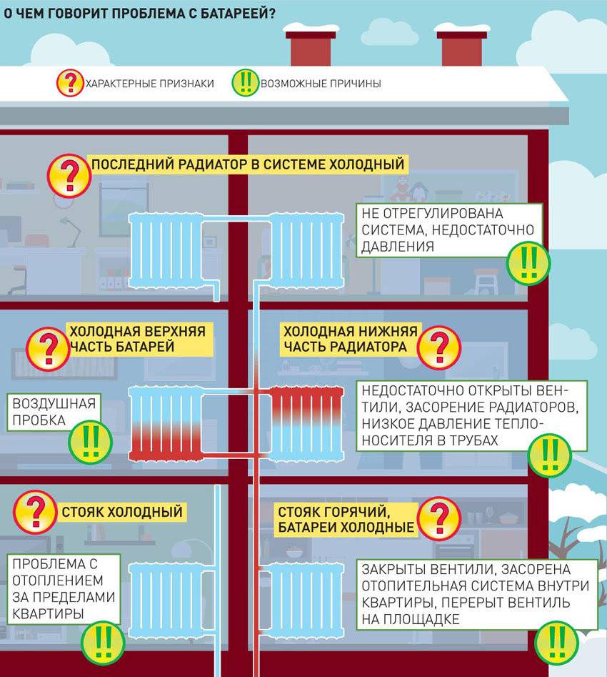 Выполнить замеры температуры в каждой зоне проживания следует в том случае, если в квартире слишком холодно. Например, батареи не греют по причине появления воздушной пробки, образовавшейся в системе.
