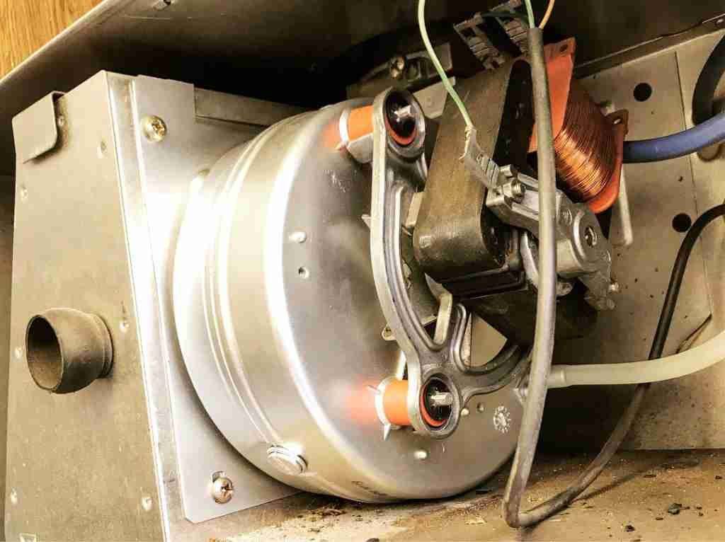 О его включении свидетельствуют характерный шум и вращение крыльчатки. Ошибка f33 появляется даже при работающем дымососе, если он не выходит на режим. При визуальной диагностике нужно убедиться, что обороты в норме. Замедленное вращение вала отражается на тяге – падает, высвечивается 33-й код неисправности.