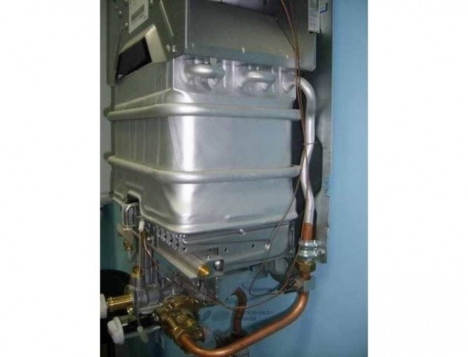 Обрастание трубок накипью может возникнуть и из-за жесткой воды. При температуре воды больше 80°C происходит отложение накипи, а при 82°C этот процесс начинает идти интенсивнее. Во избежание нарастания накипи не следует пользоваться чересчур горячей водой. Ремонт заключается в замене или чистке теплообменника.