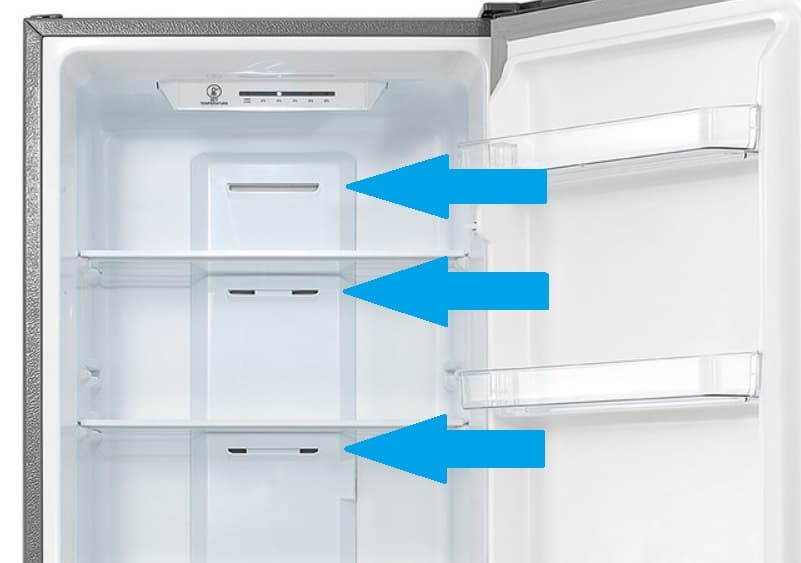 Приточные отверстия в холодильнике с системой No Frost, которые нельзя заставлять продуктами и блюдами.