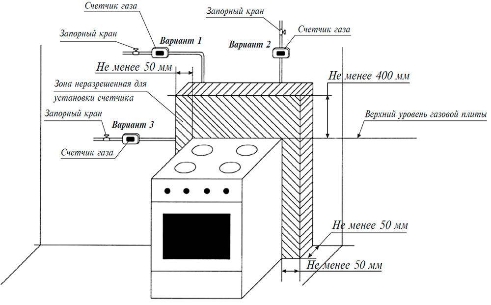 - Расстояние от трубы газопровода до плиты не должно превышать четырех метров. Лучше, если оно будет находиться в пределах двух метров.