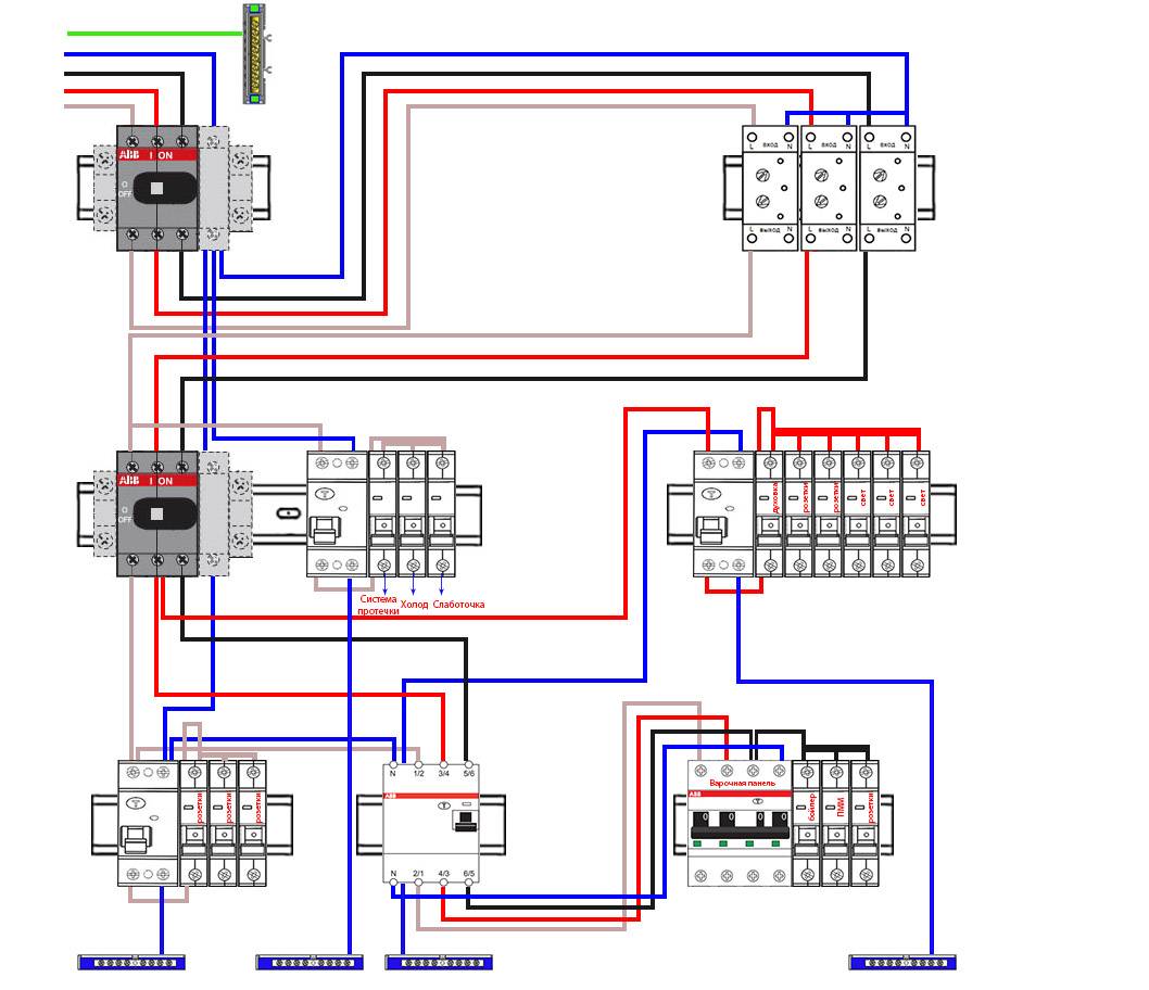 Однако такой способ не позволяет в будущем вносить существенные изменения в распредщитке. В первую очередь это связано с распределением нагрузки по фазам.