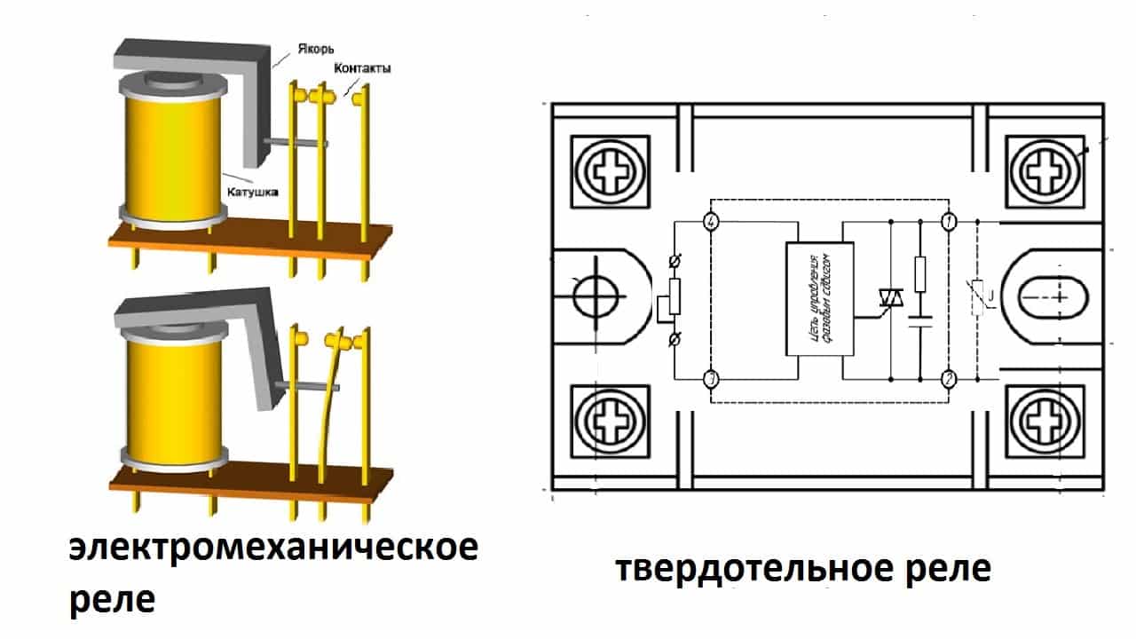 Рис. 3. Отличия между электромеханическим и твердотельным реле
