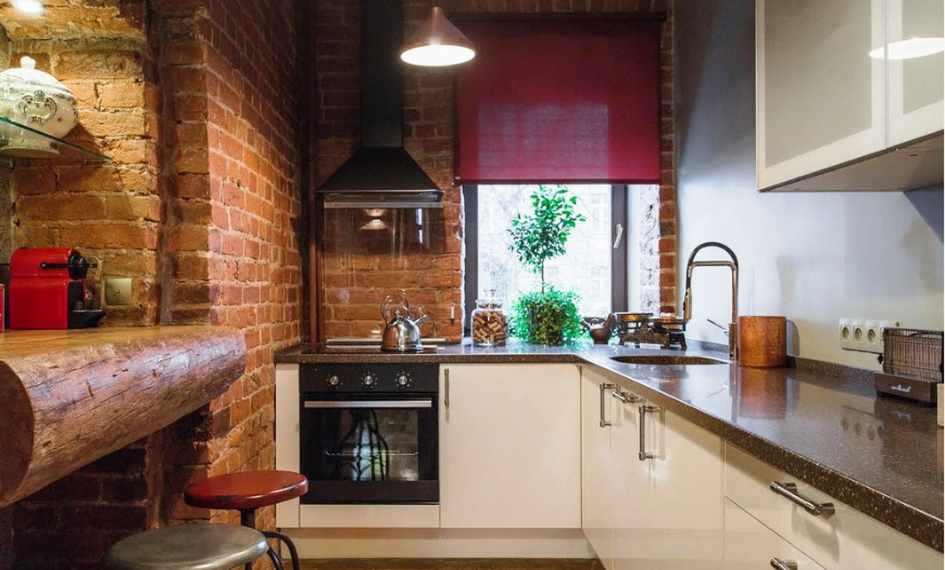 Брутальный индустриальный стиль характеризуется использованием грубых фактур и темных оттенков. Для маленькой кухни это не подходит. Но можно выбрать современный лофт как вариацию минимализма с доминированием светлого серого, имитацией восстановленных фабричных светильников и других декоративных элементов.