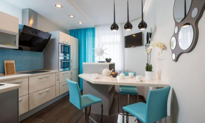 Оптимальным выбором для маленьких кухонь считается покупка складных или встроенных конструкций, а также трансформеров. Они в собранном виде не занимают много места, а их раскладывание осуществляется только в случае возникновения необходимости в этом.