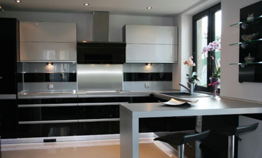 На современной кухне возможны варианты глянцевых или гладких поверхностей, а так же можно использовать для дизайна однотонную плитку.