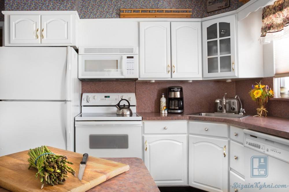 Исключительно белый интерьер небольшой кухни выглядит слишком «стерильно», а потому неуютно и отталкивающе.