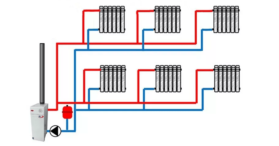 Схема закрытой двухтрубной системы отопления двухэтажного дома с принудительной циркуляцией
