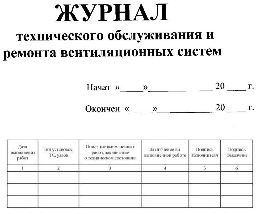 - ведутся журналы с отметкой о проведенных работах, заносятся записи о степени работоспособности вентиляции.