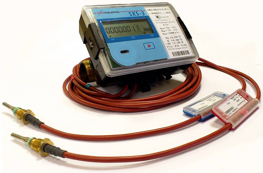 Работа теплосчетчика построена на принципе вычисления количества теплоты с применением данных, взятых от датчика расхода теплоносителя и пары датчиков температуры. Происходит замер количества воды, прошедшего через отопительную систему, а также разница температур на входе и выходе.