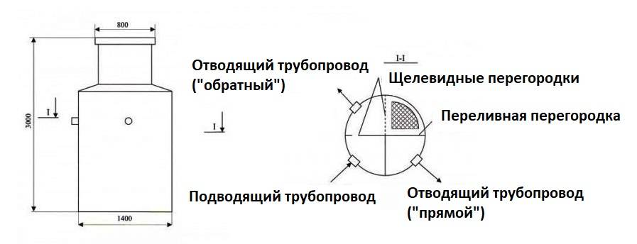 Все твердые фракции оседают на дно секции и скапливаются там в виде осадка, а легкие молекулы жира всплывают и образуют на поверхности жировую пленку. Стоки, прошедшие частичную очистку, переходят во второй отсек через небольшое вертикальное отверстие шириной 10 см.