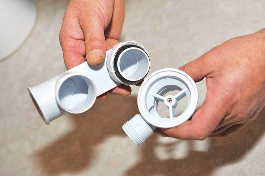 В таких устройствах заглушка выполняется роль преграды на пути запаха из канализации в помещение