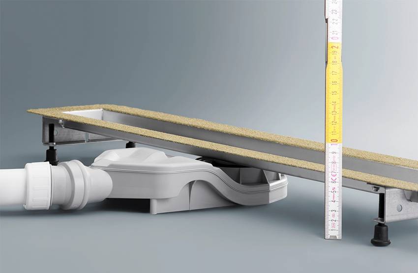 Затем нужно поставить поддон на предполагаемое место установки и измерить высоту от нижней точки трубы до пола, которая будет доступна для установки сифона и коммуникаций для отвода воды в канализацию.