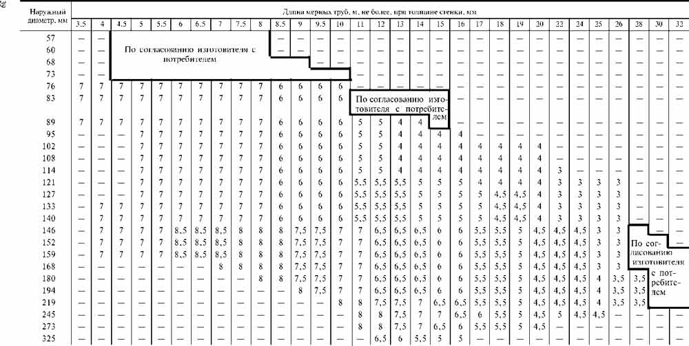 Таблица размеров труб