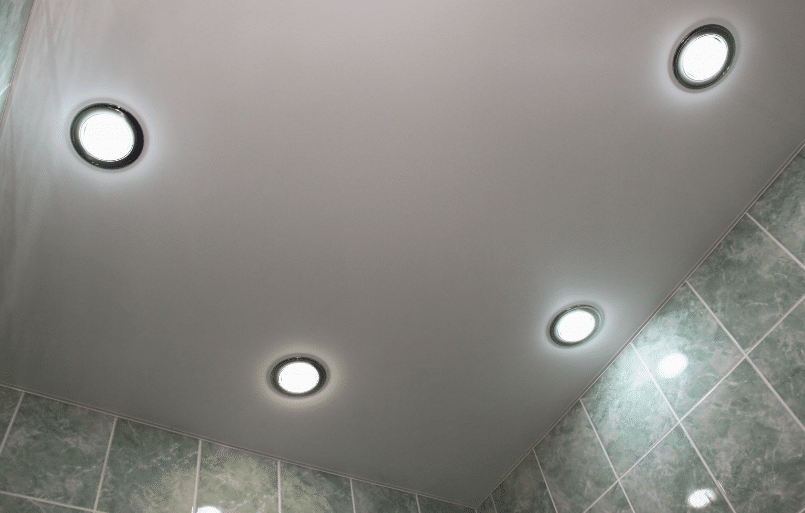 Очень важно, чтобы на источники света не попадали брызги от воды, поэтому следует выбирать потолочные светильники.