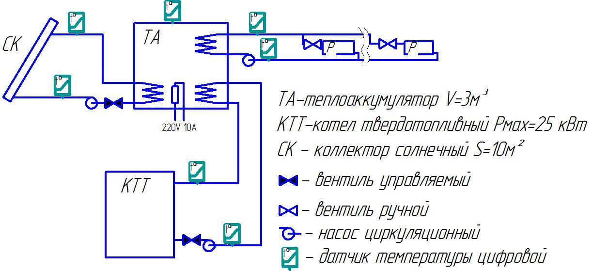 Принципиальная схема системы отопления с теплоаккумулятором