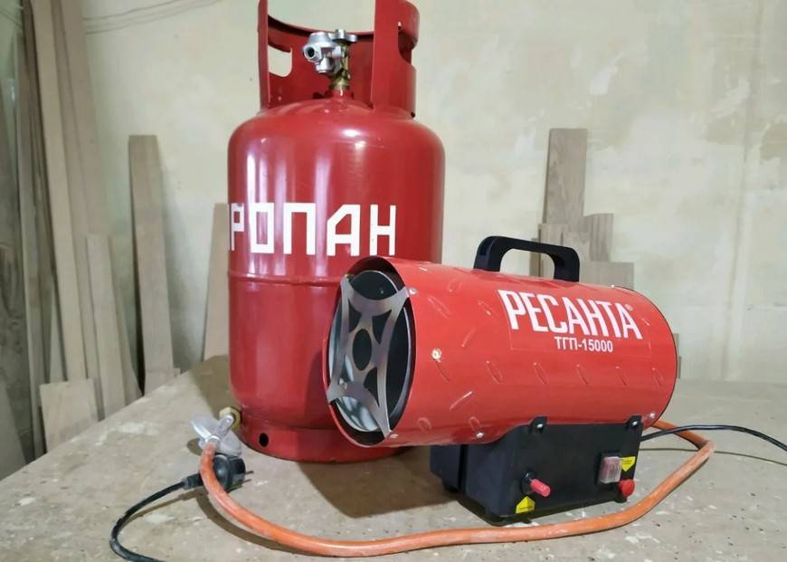 Используемое топливо. Газовые пушки работают на пропане или бутане. Возникает вопрос, какой газ лучше выбрать. Удельная теплота сгорания примерно одинаковая, но бутан сгорает немного быстрее. Как результат, производительность возрастает почти на 10%. Но при отрицательной температуре бутан становится жидким и непригодным к использованию, поэтому применять такую пушку в гараже может оказаться проблематичным.