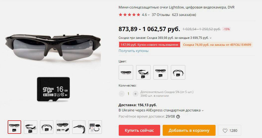 Логика та же, что и в предыдущем пункте: если вы покупаете несертифицированный в РФ гаджет, который позволяет скрыто записывать звук или видео, то нарушаете закон. 48-летний волгоградец проверил это на себе. Он заказал очки c видеокамерой за 1 тыс. рублей и хотел продать их в России за 2 тыс.