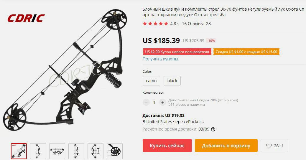 Но пересылать оружие по почте всё равно нельзя. По ГОСТ Р 51549-2000, луки с силой дуги от 14 кгс (31 lbs) и арбалеты от 20 кгс (44 lbs) – это спортивное оружие. На его ввоз нужно оформлять разрешение. Вот случай, когда компания из Владивостоке заказала в Китае арбалет, а его завернули на таможне.