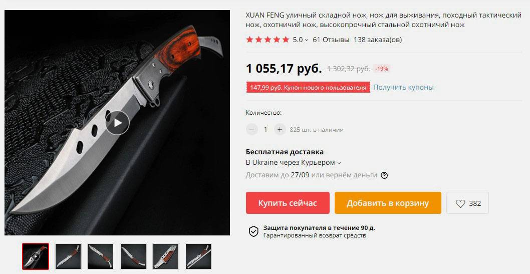 Пример из Оренбурга: женщина заказала на Aliexpress два ножа. В описании на сайте было сказано, что ножи не относятся к холодному оружию.