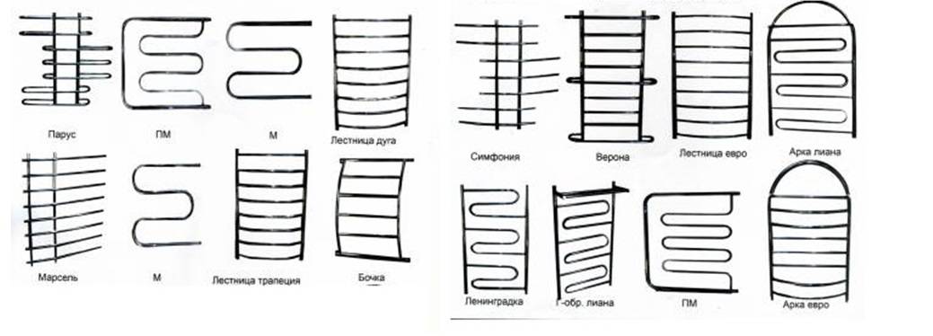 Полотенцесушители производят различных размеров. Стандартные устройства имеют форму змейки или лесенки. Разнообразие современных моделей позволяет подобрать сушку для полотенец самой необычной конструкции.