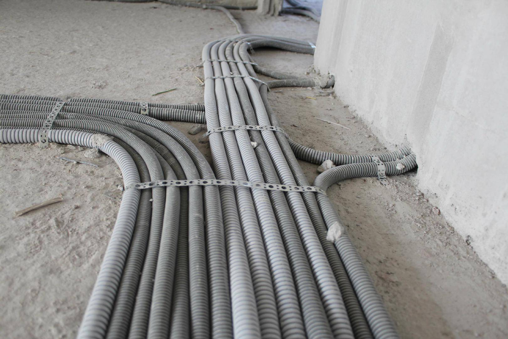 По полу кабели пускают, если сделать это на потолке, стенах невозможно. Тогда стяжка делается толщиной четыре-семь сантиметров – под таким слоем легко спрятать любое количество электропроводов. Другой фактор удобства – размещение розеток, выключателей максимально близко к полу (30-90 см.). Штробить стену для установки подрозетников здесь придется совсем немного, экономия кабеля также выйдет значительная.