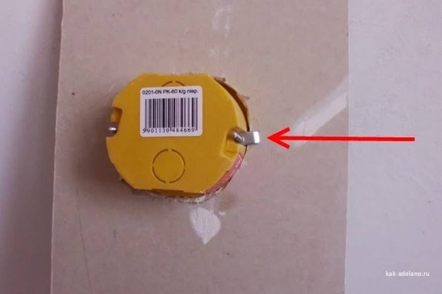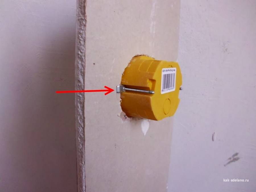 Фиксация коробки в гипсокартоне происходит за счет специальных крепежных лапок, которые прижимаются к гипсокартону при закручивании. Он называется универсальным, его можно крепить к различным тонкостенным поверхностям, в которые входит гипсокартон.