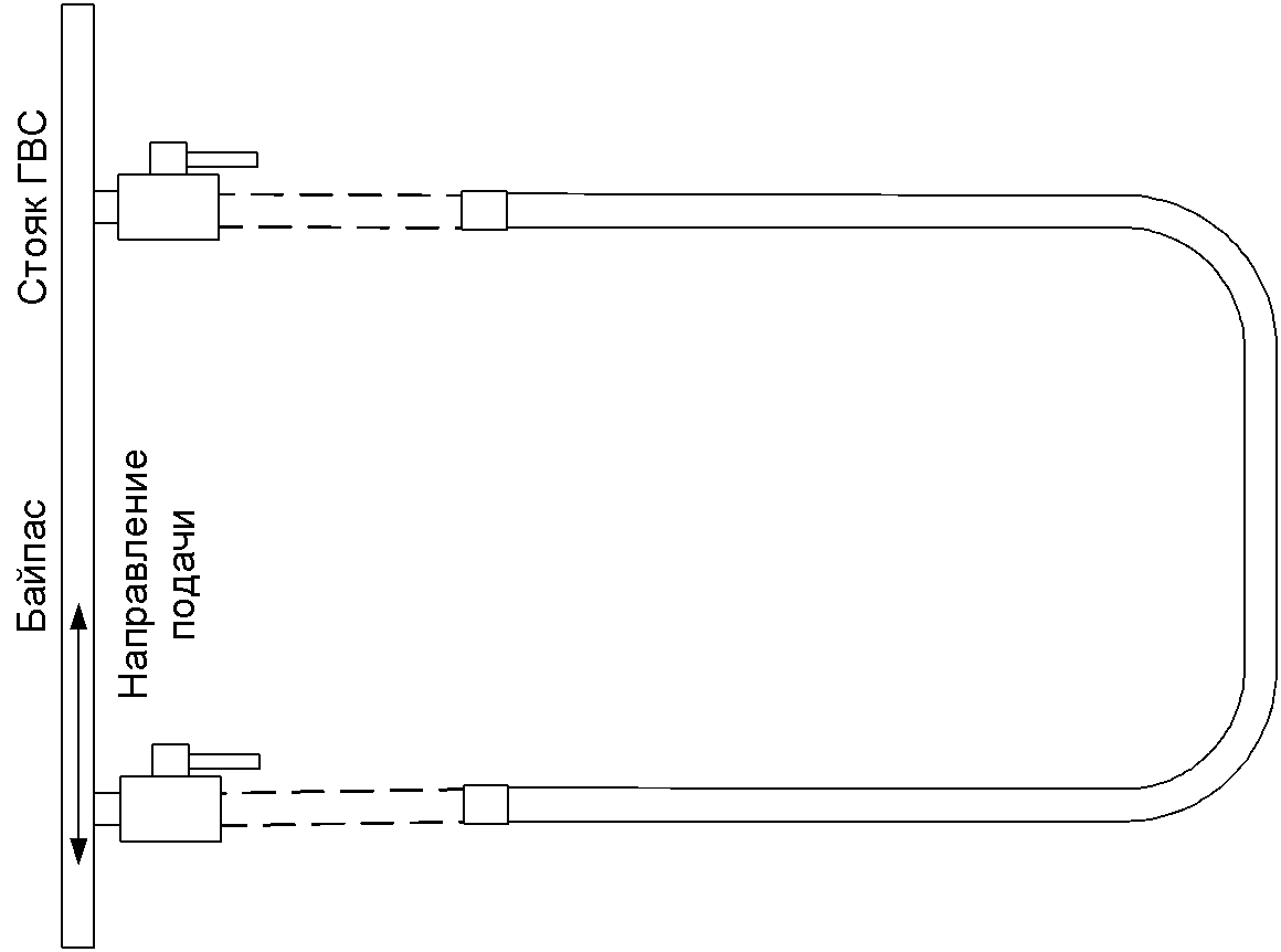 Шаровые краны устанавливают после этой перемычки. Когда патрубки для подключения врезаны в стояк, то он сам выполняет роль байпаса.