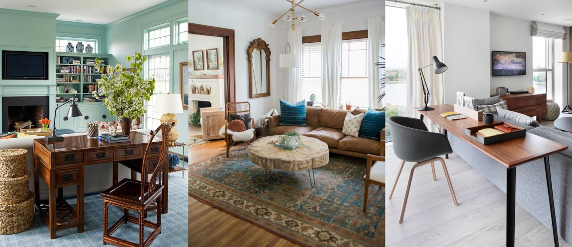 Чем больше пространство в центре комнаты — тем просторнее кажется интерьер. На деле — нет. Расстановка по стенам не красит пространство, не работает на устранение недостатков (например, в вытянутых комнатах), и это не всегда удобно с точки зрения расположения функциональных зон.