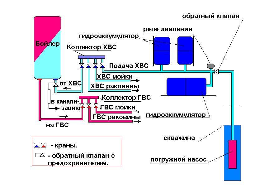 Обратите внимание, что полученное значение не должно превышать максимально допустимые характеристики для прочих бытовых и сантехнических приборов, иначе они попросту выйдут из строя. Если говорить о независимой системе водоснабжения дома упрощенно, то её составными элементами являются: