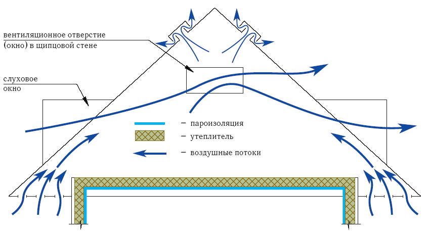 Схема движения воздуха в мансардной крыше