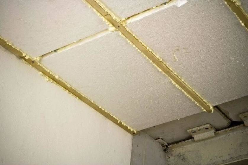 Работа начинается с тщательной очистки поверхности от мусора, пыли, паутины или влаги. При укладке изделия на потолок следует обязательно оставлять вентиляционный зазор для защиты от плесени и скопления влаги.